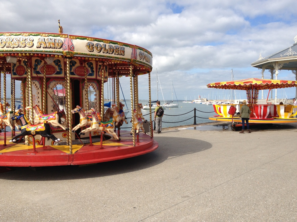 A little carnival atmosphere on the pier. There are reports that several children, having worked up sufficient centrifugal force with their horses and teacup wheels, were launched into the harbor. All were fished out unharmed. *