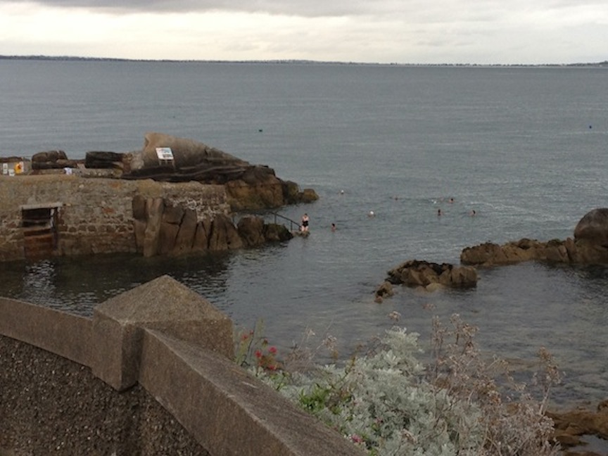 This is the Forty Foot at Sandycove. Used to be “Gentlemen Only” (that would be because they were nudie gents, sure and they were). Now it’s Crazy Adventurous People Only, considering the fact that it was probably 10 degrees Celsius (50 Fahrenheit) outside when I took this picture.