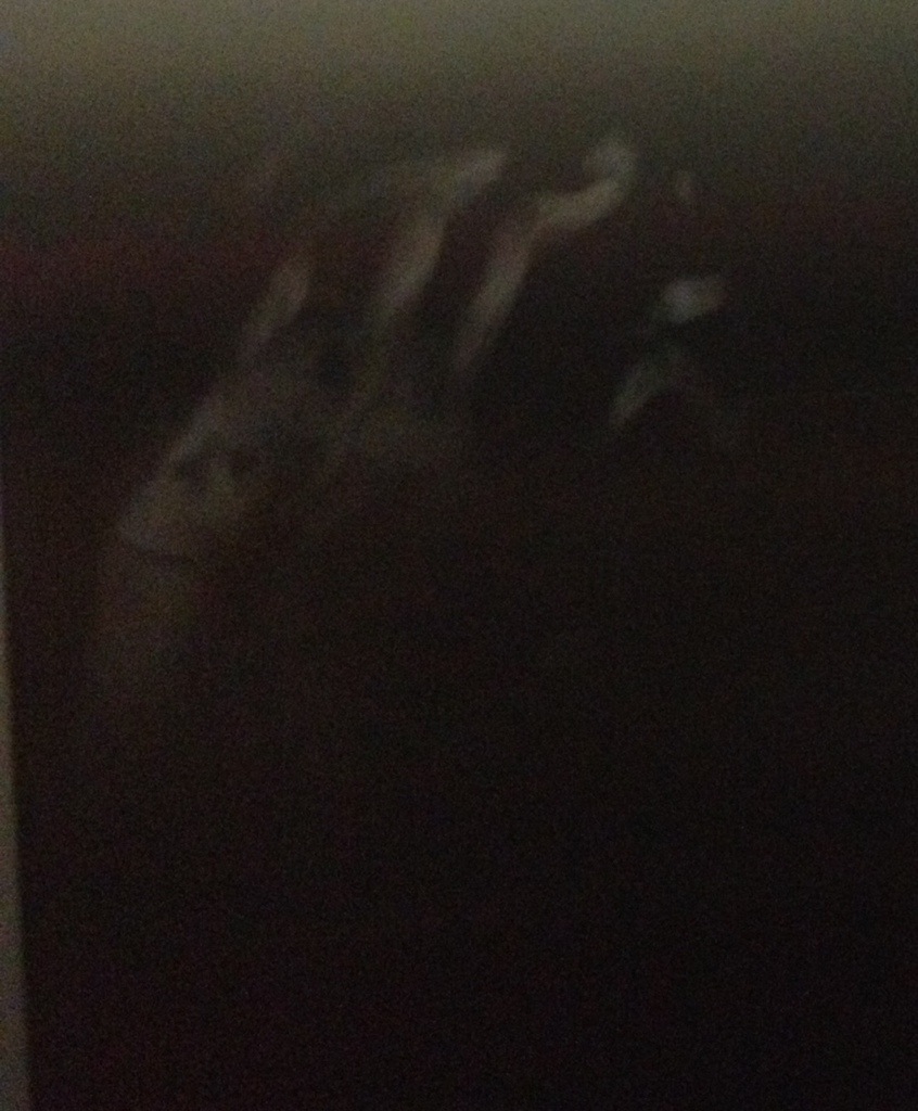 Small, hazy, otherworldly handprints going up the elevator wall all the way to the ceiling…